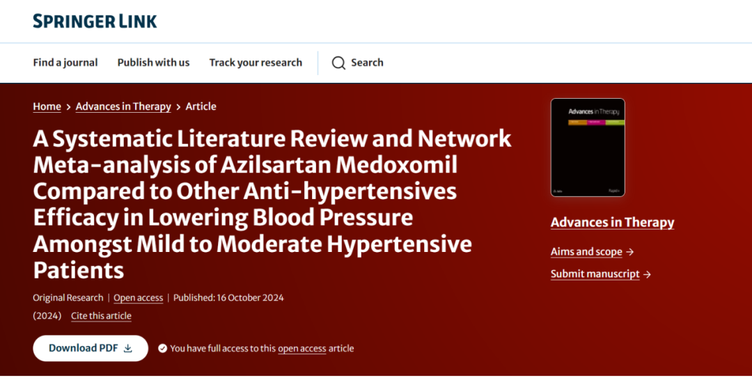 2024年10月16日,stake电子生物医药有限公司宣布旗下重磅降压药物美阿沙坦钾(商品名:易达比®)一项最新的网状荟萃分析研究于国际知名期刊Advances in Therapy发表。该网状荟萃分析研究结果显示,在轻至中度高血压患者中,与其他常用一线降压药物(ARB、ACEI、ARNI、β-受体阻滞剂、钙通道阻滞剂)相比,美阿沙坦钾(40mg和80mg)显示出良好的降压疗效,尤其是80mg剂量在降低诊室收缩压和舒张压方面最为有效。此次研究结果的发表,表明了国际同行评审对于对该分析研究质量与数据的认可。